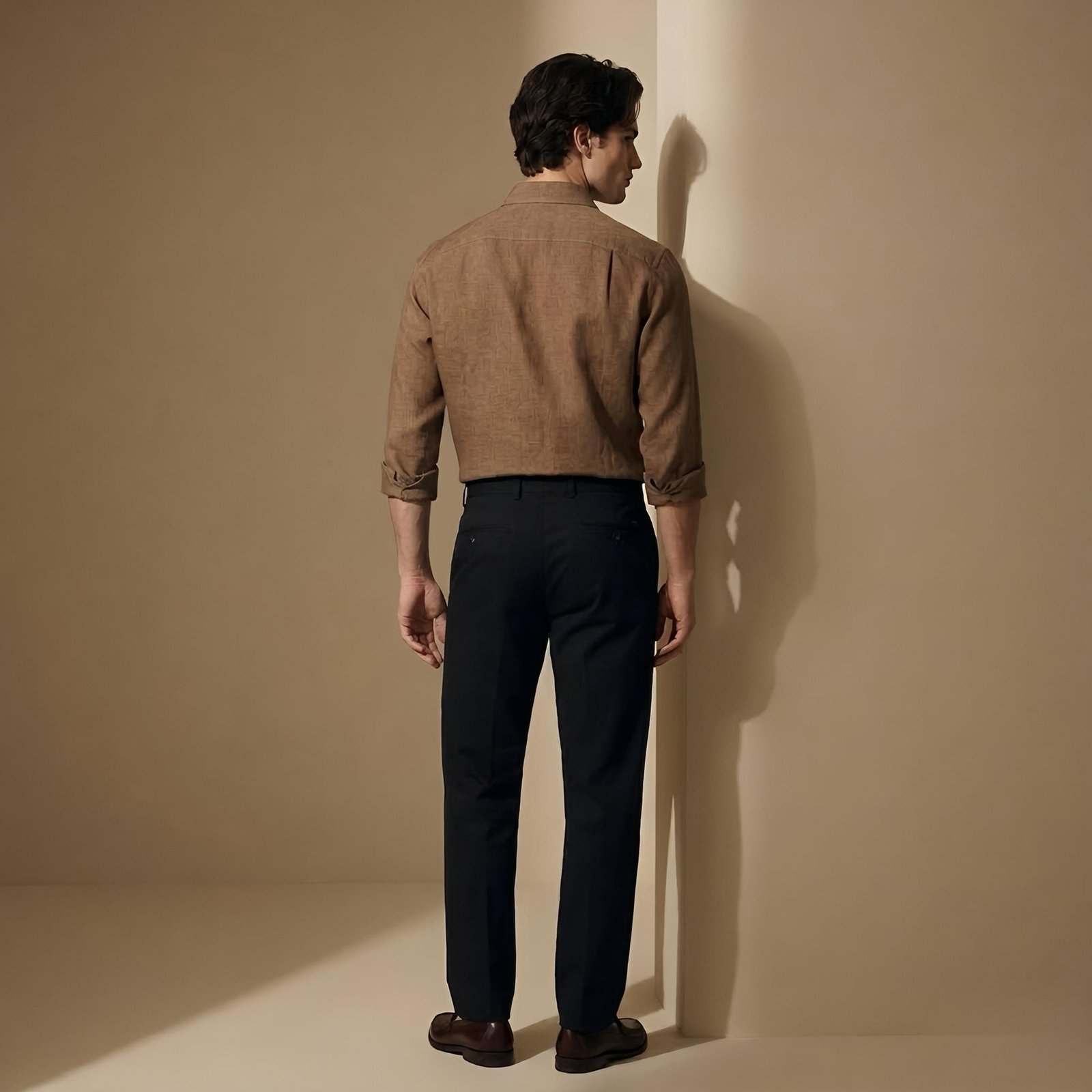 A classic wardrobe essential designed with refined simplicity. The Tailored Trousers feature a clean front pleat and a sharp, straight silhouette that offers both comfort and structure.
