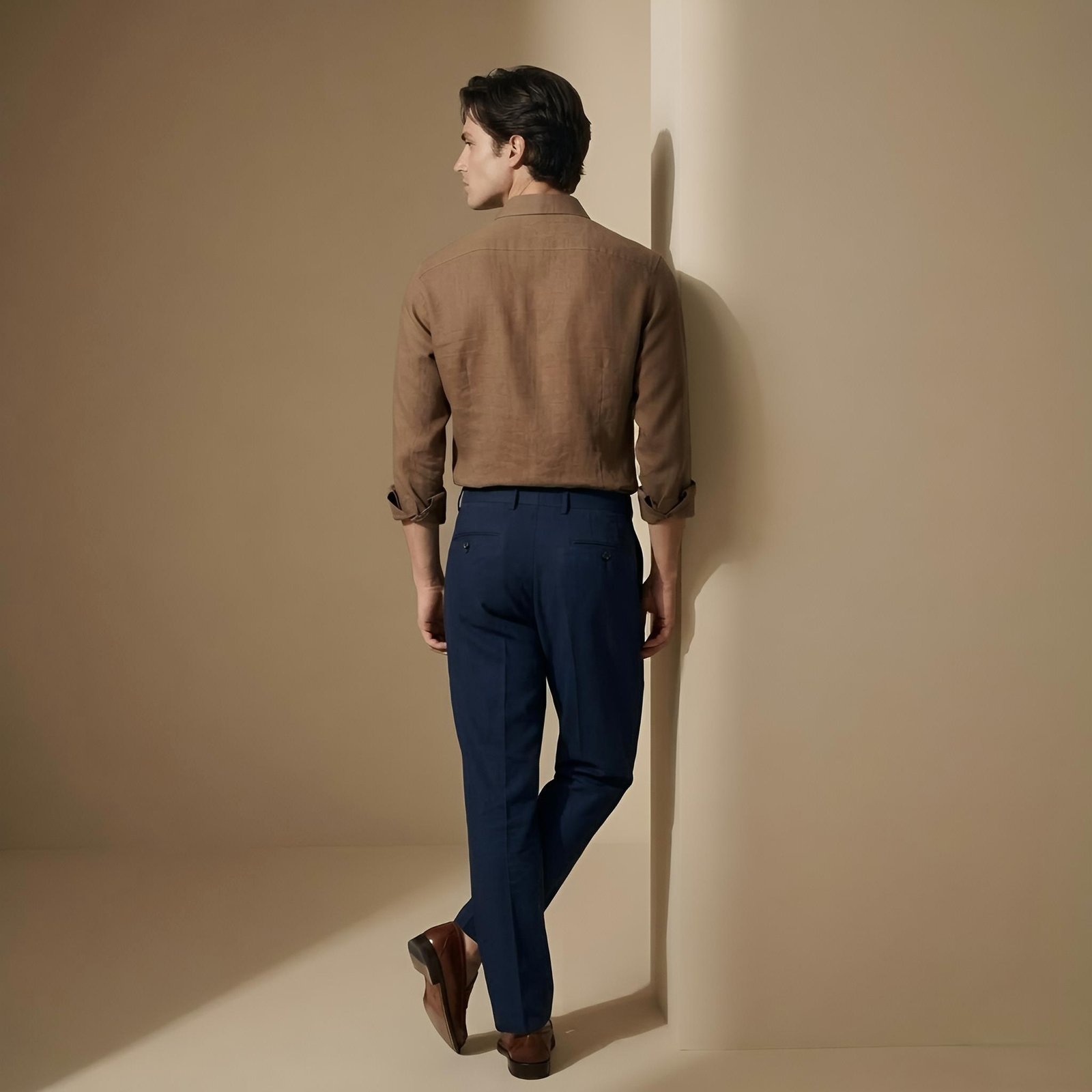 Finished in a deep navy tone, these trousers pair effortlessly with shirts, knitwear, or polos for a polished everyday look. The tailored fit and minimalist design make them a timeless piece suited for both formal and relaxed occasions.
